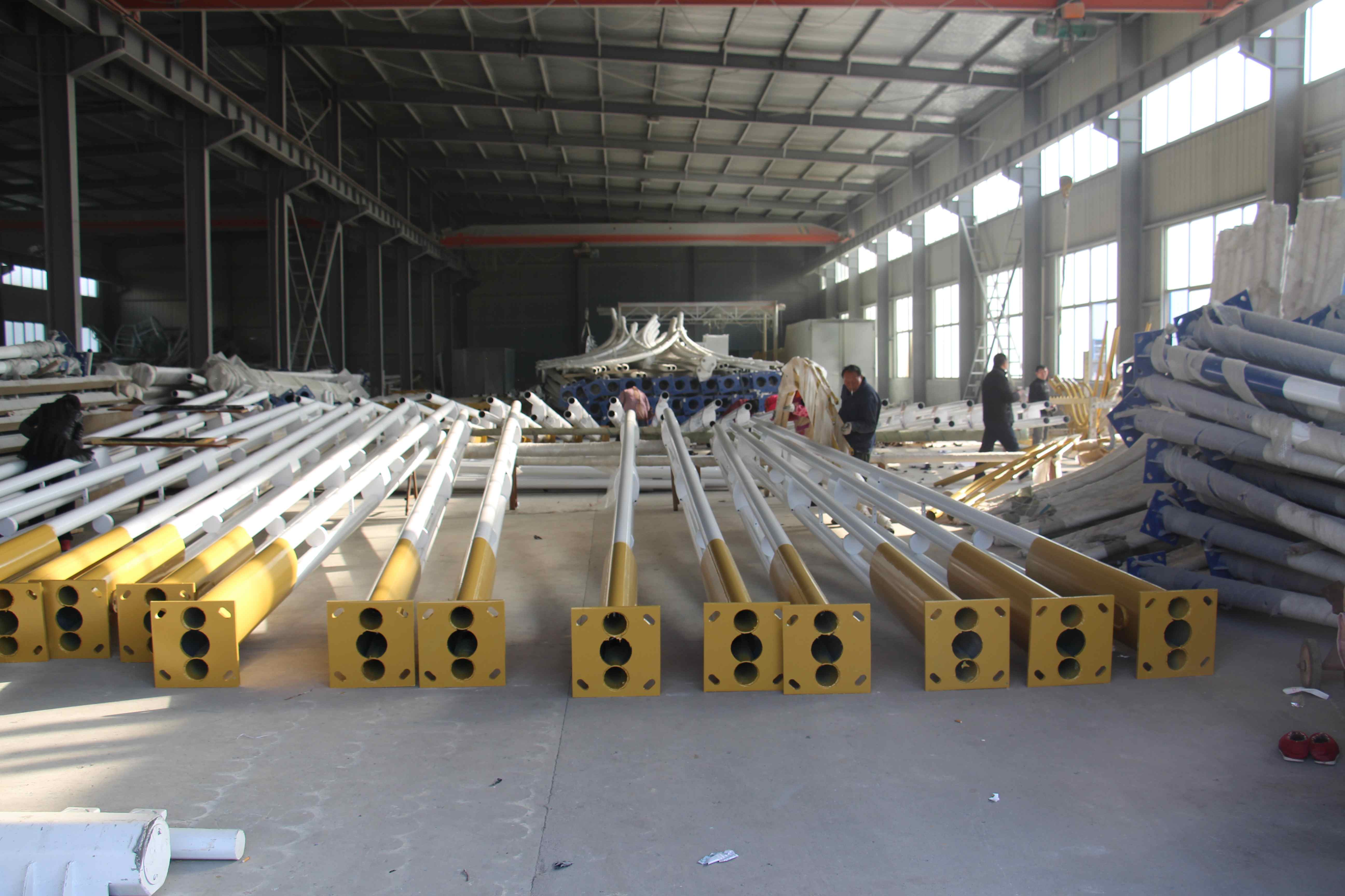 高郵市捷通交通器材有限公司位于揚州北郊送橋開發區。公司占面積20000平方米,建筑面積12000平方米。   二千年以來,以鋼代木和水泥桿已風行世界,我國各地也紛紛建立錐桿廠,以漂亮的錐桿代替了過去的和水泥桿,裝點了一條條的公路和街道,美化了環境,照亮了人間成為各地新建和改造道路的不可缺少的配套設施。路燈的千變萬化,已成為各地路燈生產商和建設者的追求。   但現有的路燈,均在燈頭及底座上變化;燈頭款式雖多,但在燈桿上均無變化,只有光身錐桿和光身直桿,十分單一。以我公司多年對管材深加工設備的認識,加上全公司員工的不懈努力,成功設計制造了花式錐桿的機械設備,生產出竹節、六花